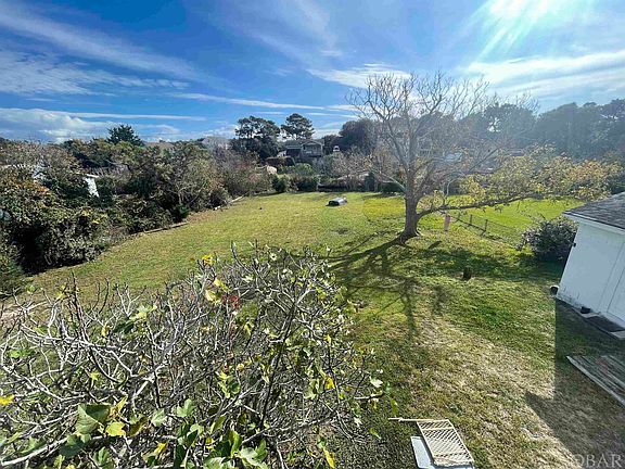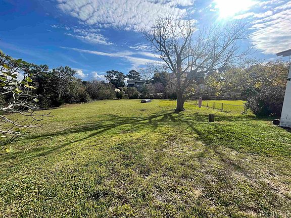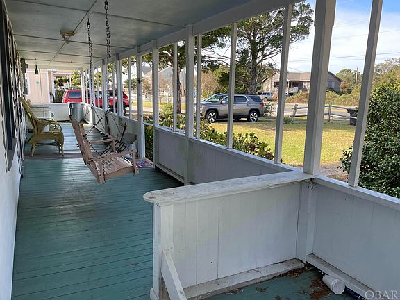 Standing strong on a nice big property in Buxton, this 1920 duplex offers lot of potential! The over half-acre lot is dry and elevated and slopes to a pretty creek in the back. There is no heat source, it has window air conditioning units, and there are plenty of projects ahead - but what a great chance to have a home in Buxton with an income producing second unit. You could covert this to a single family house as well (currently no interior stairs). Banks will not lend on properties without heat or that have extensive repair or safety concerns, so this one is for the cash buyers out there who may want a home or investment property at the beach, or to provide affordable housing options to locals and employees. You can enter the first unit from the full front porch or back stoop to find a living room, dining room, kitchen, and two bedrooms and a bath. There is a storage room with a separate entrance on this level that has a washer and dryer for common use (unknown condition on the washer and dryer). The top floor unit is accessed by the rear deck. Be careful on the steps. The stair treads were replaced but rails and supports need repair. This unit has a large living room, kitchen, two bedrooms and a hall bath. There is a pull down stair access to a large attic space. The detached garage makes a nice workshop or it could be a fun Tiki Bar hangout.