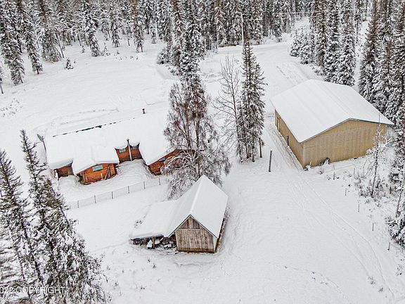Beautiful Alaskan Log home. 4 bedroom, 2 bath, with a HUGE 1600 sq. ft. Shop! Large open updated kitchen, Hickory kitchen cabinets, vaulted living room ceiling, 2.64 Acres at the end of a dead end road, very private setting. No CCR's. AS-IS, Seller not making any repairs. Circular Driveway with a large gravel area for parking Trailers, Boats, RV, etc.