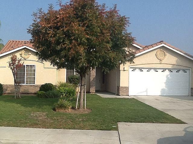 This house built in 2007 has approximately 1731 square feet with a great room, den/office, dining area, carpets, linoleum flooring, blinds, tile counters, gas range, dishwasher, garbage disposal, laundry room, central heat & air, ceiling fans, fireplace, covered back patio, 2-car garage with electric opener, front & backyard with automatic sprinklers, alarm system available at tenant's option and expense. Take E. South Ave, turn right onto Willow Ave, then turn right on Oak Ave, continue onto Almond street. Close to school, park & shopping. Tenant responsible for all utilities Minimum of one year lease required Non destructive pets are allowed.