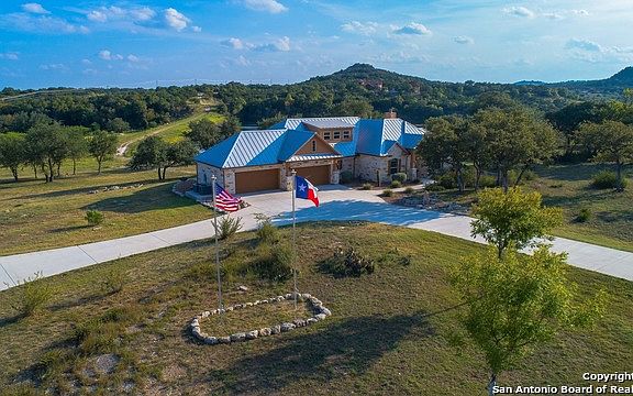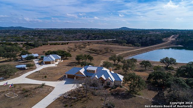 Luxurious Hill Country Compound on 5.4 ac that lives like an expansive ranch. LAKE VIEW, AG-EXEMPT w/ 4,100+ sf of total living space. Meticulously designed main home 3/4, 2927 +/- sf w/ 4 car garage, exquisite 2nd home 1/1, 1240+/- sf w/ 2.5 car garage & 1500+/- sf workshop/barn w/ electric, water & cable. Abundance of native & exotic wildlife. Property adjacent to 80+ ac common area w/ stocked lake. Ideally located +/- 1 hr from Austin & SA. 30k gal rainwater catchment & 15gpm well. Close to wineries