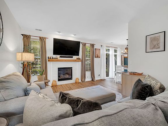 Fall in love with this beautifully updated and upgraded home, brimming with thoughtful extras! Step into a spacious living room bathed in natural light, featuring stunning wood laminate flooring, a chic gas fireplace, and a modern color palette. The kitchen is a chef's dream, showcasing ample counter space, sleek stainless steel appliances, and oversized cabinets, all overlooking the cozy dinette area. A sliding glass door leads to the inviting patio, perfect for enjoying those relaxing evenings. Upstairs, you'll find an enormous loft with wood laminate flooring and can lighting-ideal for movie nights or a quiet retreat on rainy days. The oversized ensuite comfortably accommodates a king-sized bed and includes a walk-in closet with natural light-a delightful feature. The updated bathrooms are charming with their new vanities. The finished garage boasts an epoxy floor and added storage space. Smart switches installed throughout the home are compatible with Alexa and Google, and a newer water heater adds to the convenience. This meticulously maintained home is located in the highly sought-after Oswego school district and is conveniently close to shopping and more. Don't miss out on this gem!