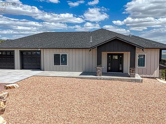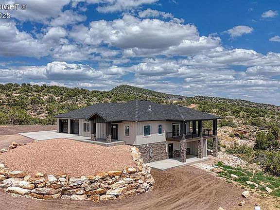 Stunning New Build with Panoramic Mountain Views in Cañon City! Welcome to your dream home, perfectly perched on 36.42 acres of pristine Colorado landscape, offering unparalleled views of the majestic Wet Mountains and the Sangre de Cristo range. This exquisite 3-bedroom, office/den that could be a 4th bedroom, 3-bathroom residence spans 3,845 sq ft of thoughtfully designed living space, blending modern luxury with natural beauty. As you enter this beautiful home, you’re greeted by a spacious living room featuring a cozy gas fireplace, perfect for those chilly Colorado evenings. Double doors open up to a sprawling 700 sq ft deck, inviting you to soak in the breathtaking vistas and enjoy seamless indoor-outdoor living. The heart of this home is its open kitchen, equipped with Samsung appliances and ample counter space, ideal for both everyday cooking and entertaining. The master suite, a sanctuary of relaxation, featuring a luxurious stand-alone tub and a walk-in shower, 10x10 walk in closet offering a spa-like experience right at home