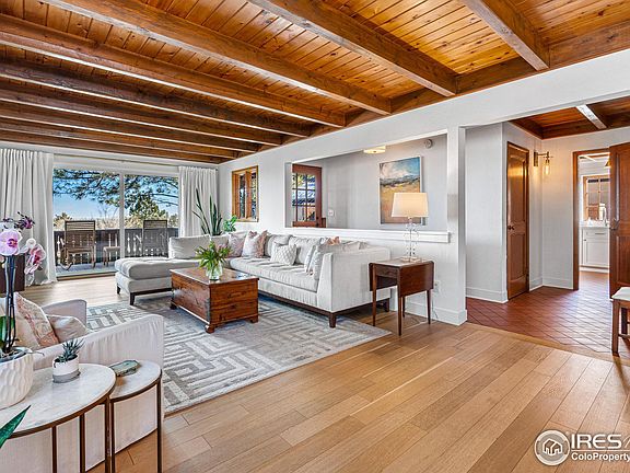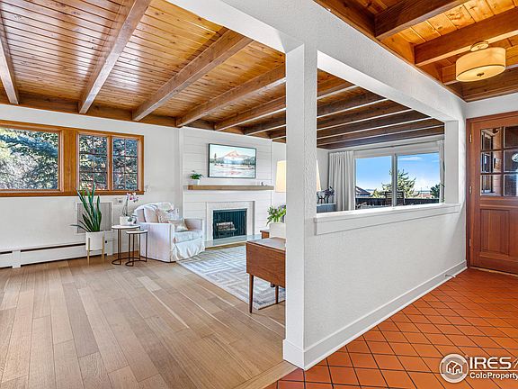 Situated in one of Boulder's most sought-after enclaves, nestled into the serene Flagstaff open space, this completely remodeled cozy & contemporary, Swiss Chalet-style home offers an idyllic perch above the city, providing breathtaking views in every direction! Not a detail was overlooked! Fully remodeled, the space exudes modern farmhouse comfort & character, with Shiplap walls throughout, Quarter Sawn White Oak hardwood flooring, wood beams, custom built-ins, designer lighting. Kitchen is a chef's dream with upgraded stainless steel appliances, commercial grade refrigerator & Bluestar range, floating shelves, custom cabinetry, quartz countertops, nook for dining or studying and views overlooking the city. Living and dining area features a dry bar with beverage refrigerator and wood burning fireplace, offering space for larger gatherings or intimate dinner parties. Back patio offers some of the best sunrise views in Boulder, overlooking the city! Primary Suite is a retreat in itself, with a spa like master bath, a wood burning fireplace, and gorgeous city and Flatiron views! Upstairs also features two additional bedrooms, each w/ a private balcony and stunning views. Lower level walkout basement features a den (could be used for an office with a private door entrance). Garage was converted to a Bonus room/office with sliding glass doors, providing endless options for use - Family room, office, Studio, Gym, Shop etc. Enjoy the tranquility & seclusion of this wonderful home, while still being within walking distance of the Pearl St Mall, Chautauqua Park, and CU!