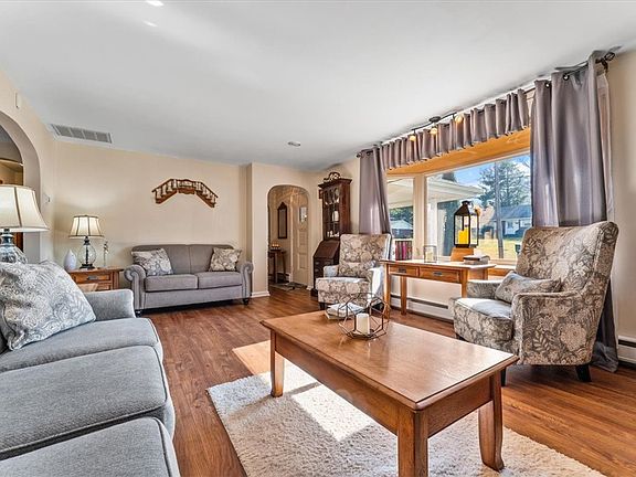 3 Bedroom 2.5 Bath Sprawling Brick Ranch On A Private 1+ Acre Corner Lot Surrounded By Green Space w/ An In-Ground Pool.Superb Curb Appeal w/ Hummingbird Cupola & Brick Lightposts.Front Entry Features An Inviting Covered Porch.Cozy Living Room w/ Bay Window,HW Floors,& Stone Wood Burning Fireplace.Bakers Kitchen w/ Barn Sliding Door Pantry,Updated Countertops/Cabinets w/ Stainless Hardware,Full Appliance Suite w/ 2 Ovens,& Bamboo Flooring.Formal Dining Room w/ Glass Slider That Leads To A Covered Porch.Family Room w/ Pellet Stove,Vinyl Flooring,& Glass Slider That Leads To A Deck Overlooking The Pool & Pool House.3 BR's w/ HW Floors,Ceiling Fans,& Lots Of Closet Space.Full Bath w/ Grey Tile & Tub.1/2 Bath Off Entry Way.Entertaining Continues Downstairs In The Game Room w/ Wet Bar,Full Bath w/ Walk In Shower,Faux Stone Accent Wall,Built-In,Large Cedar Closet,Addtl Storage Room,Laundry Room,& Tons Of Storage Shelves.In-Ground Pool is 18x36 & Ranges from 3-6Ft Deep.Pool House w/ Full Bath