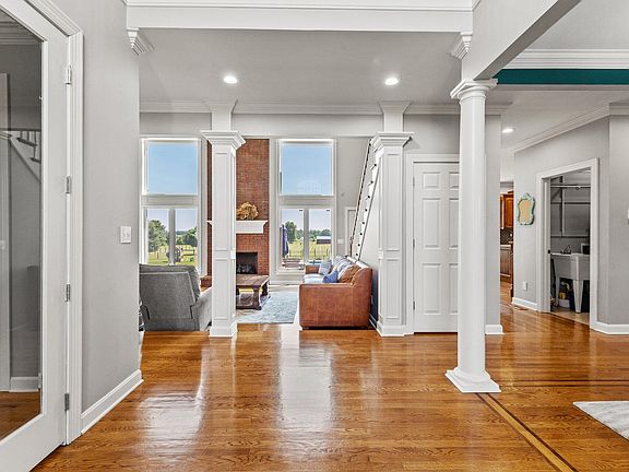 This fabulous property is updated & upgraded! You can't beat the flat 5+ acres, in ground pool, full basement & gorgeous finishes throughout the inside. Main level features a sunken great room w/gas logs fireplace, built ins & hardwood floors. Additional on this level you'll enjoy the formal dining room, formal office space, luxurious primary ensuite AND an additional large bedroom & full bathroom with a side access man door making this ideal for a guest, in law, etc. The kitchen has been updated w/gorgeous leathered granite, tiled back space, stainless appliances including a convection oven! The primary has hardwood floors, plantation shutters, double closets, tiled walk in shower, 2 vanity areas, sep. water closet & fabulous soaking tub! Upstairs you'll find 4 more bedrooms, one of which is the bonus room over the garage. The lowest level is mainly unfinished but does have some framing completed & has vents ran so its heated & cooled. Also includes a 4th car garage that measures 29'8'' in total depth. Outside you'll LOVE the in ground pool, bricked patio space, horse barn w/water & electric, play set, garden area + room for your horse (just needs fencing finished)!