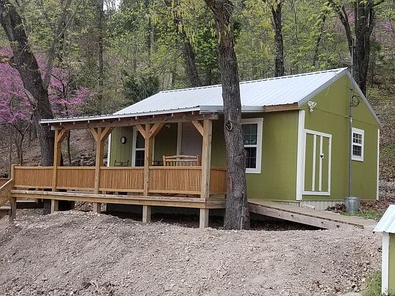 Unbelievable views from your entire property or just sit on the front deck and soak it up. This small but charming one room cabin is finished out with pine tongue & groove wood, separate bathroom and bedroom nook. You won't spend much time inside when you have a view such as this one and wooded land with improved roads/trails to explore. A very picturesque developed (rockwork) spring has been used for years as water source prior to a well being drilled supplying ice cold fresh water. A nice new 30x60 shop wtih 15x60 lean-to attached sits tucked away near the cabin to house your vehicles, toys, tools, machinery, or whatever you are into. A large septic system was installed that could easily service a larger home if needed. Plenty of room to add on to the cabin or use the huge level pad just steps above the cabin and build your dream home. The land has unlimited building sites scattered throughout with easily accesible roads already installed zig zagging across the property. Huge hardwoods, pines, redbuds, rock formations and wildlife add to the ambience. This property is only minutes from Eureka Springs, Berryville, Ar., Branson, MO., or within an hour to the Fayetteville/Springdale/Rogers/Bentonville corridor and the Northwest Arkansas Regional Airport. Only half a mile of dirt county road off of U.S. highway 62. Truly a hard to find property only minutes from town!