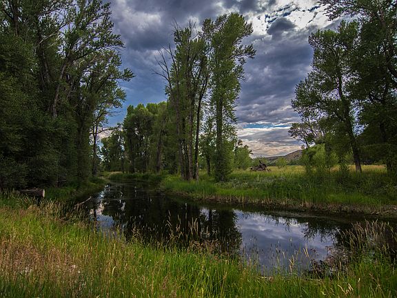 The C Lazy J Ranch is a 180 +/- ranch with Savery Creek meandering through. The 180 acres is in a park-like setting and in the middle lies the custom built 4,300 sq. ft. home boasting of 4 bedrooms, office, 3 1/2 baths with terrific views of the irrigated meadows out of nearly every window. A pond winds from the house toward Savery Creek where overflow returns to the creek. Savery Creek offers excellent fishing with several good riffles and deep pools. The ranch has enough sub irrigated grass along the creek bottoms, pastures and 160 acre state lease to support 40 head while not interfering with the hay fields which on the average put up 180 tons.The cottonwood trees, chokecherry and willow groves, ponds and meadows make great bird and wildlife habitat. The ranch also boast of a detached over sized garage, equipment shop and work shop with caretakers. The ranch is located ten miles from the jet-capable Dixon airport and four miles north of the town of Savery, Wyoming, has nearly a mile of scenic Savery Creek which provides good fishing and irrigation water. The ranch supports countless varieties of wildlife including moose, elk, antelope, mule and whitetail deer, sand hill cranes, blue herons, and Canadian geese.