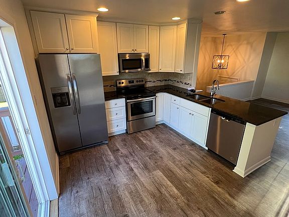 The heart of the home is the updated kitchen, where you'll find brand-new stainless-steel appliances and stunning granite countertopsideal for both everyday meals and entertaining guests. Elegant new light fixtures brighten the space, adding a sophisticated touch.