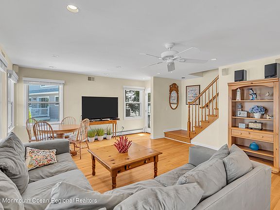 LEASED LAND - Well situated Shore Colonial is on leased land in the very desirable Journey's End section of Normandy Beach. This reverse living home features 4 ground floor bedrooms w/multiple living areas throughout. The main level consists of a large family room w/fireplace, huge eat-in kitchen, & a formal dining room w/room for the whole family. The top floor is the primary suite complete w/bedroom, full bath, walk-in closet, & office/sitting room w/fireplace. The exterior features multiple balconies, sprawling back deck w/in-ground hot tub, 2 car garage w/storage room, & ample off-street parking.