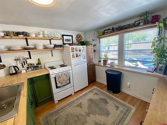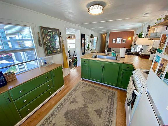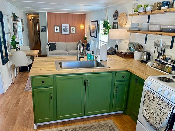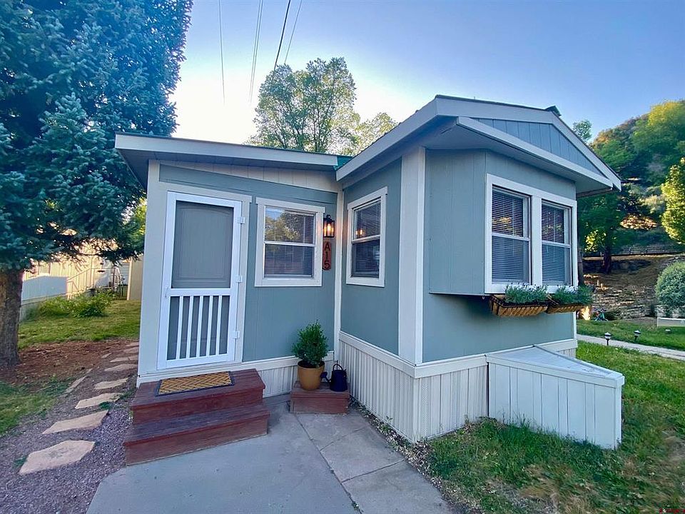 Looking for affordable living within walking distance of downtown Durango? Look no further! This bright and cheerful two-bedroom, one-bath home is located in the desirable Island Cove Park, where residents enjoy access to a private island on the Animas River with walking trails, a sand beach, and incredible views. This home features a brand-new kitchen with all new appliances, a renovated bathroom with a new shower/tub combo, as well as a new 40-gallon hot water heater. With fresh interior and exterior paint, a new roof, and updated siding and trim, this lovely home is move-in ready. The add-on mudroom makes a perfect home office or creative studio. With a generous lot size, you have space to relax and enjoy grilling with friends in the backyard. In the winter, keep your electric costs low with in-wall gas heaters in the living room and primary bedroom. This home also comes with a large storage shed for all your outdoor gear. Prospective buyers must be approved through a resident application process by Island Cove management; no land is transferred with the sale of this home. Lot rent is $845/month and includes lawn care, trash, and snow removal. Community garden plots and on-site storage units are available. On-street parking for two vehicles is also included. With housing prices in Durango going up, up, up, this uniquely affordable opportunity won't last long. Book your showing today!