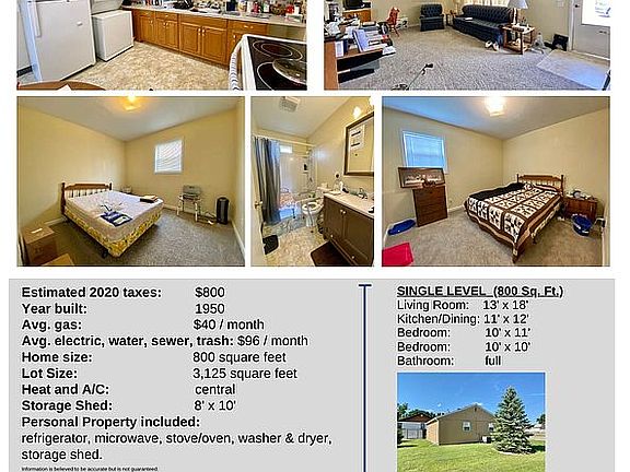 - Total interior livable area: 800 sqft