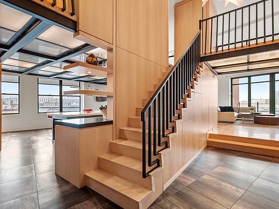One of kind Penthouse with commanding skyline views meticulously designed & constructed using the finest materials. This sophisticated home lives on (2) levels with 3 flexible sleeping areas & 2.5 bathrooms. Custom maple flooring & concealed cabinetry walls, custom crafted steel, wide-open living spaces all surrounded by glass, when combined epitomize modern luxury living. This top floor corner home is flooded w/ natural light. Step out onto the large deck from your living room via the “Nana” door wall system & take-in the spectacular views. The designer kitchen has chef grade appliances, oversized island, custom cabinetry, stone tops, plus a separate pantry/wet bar area. The Primary bedroom has significant closets & storage, a modern ensuite bath w/ double vanity sinks and large step-in shower. The upper lofted level also has concealed wall storage, a full modern bath, & 2 flexible rooms that can easily convert to your specific needs.Garage parking included. 1st time on the market.