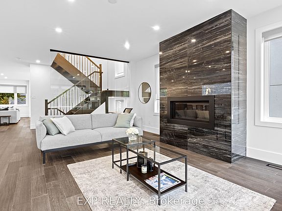 Welcome to this modern, custom-designed 5 Bedroom, 4 Bath Detached home offering over 3,000 sq. ft. of luxury living in a quiet, family-friendly neighbourhood. Thoughtfully designed with high-end finishes throughout, this residence combines style, function, and comfort. The main level is bright and inviting, featuring hardwood floors, natural stone accents, pot lights, and an oversized living and dining area anchored by a striking gas fireplace perfect for entertaining. The gourmet kitchen impresses with full-height cabinetry, quartz countertops, a large center island, pot filler, high-end appliances, and a central vacuum toe kick for convenience. Upstairs, the primary suite is a true retreat with a private balcony, custom walk-in closet, and spa-inspired ensuite with double vanity, glass walk-in shower, and soaker tub framed by floor-to-ceiling tile. Three additional spacious bedrooms, a beautifully appointed main bath, and a dedicated laundry room complete this level. The fully finished walk-out lower level is filled with natural light and offers a 5th bedroom, full bath, and versatile flex space ideal for a media room, home office, or gym. Outside, enjoy a private fenced yard with a patio and porch, perfect for family living and entertaining. An attached oversized garage completes this stunning property. A rare opportunity to own a contemporary dream home designed to impress from top to bottom!