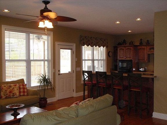 Wonderful open floor plan in this 3 bedroom 2 bath home, with hardwood floors and ceramic tile. Living room with rock fireplace overlooks large covered back porch and pool, separate screened in porch from the master bedroom. kitchen with pantry, island and breakfast bar. open Dining room for formal or informal use. unfinished Bonus room over 3 car garage, private corner lot. On Demand hotwater