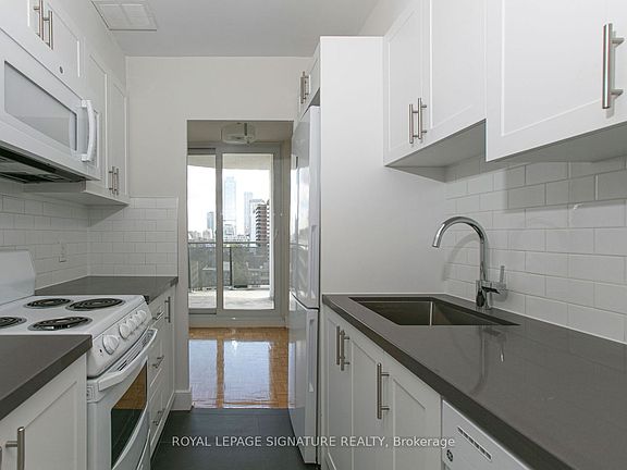(applied in your 8th month on a 1-year lease) All Utilities Included (except hydro), Parking & Storage Lockers Available (for an extra monthly fee). Location Highlights: Steps to the subway for quick and easy commuting, minutes from University of Toronto great for staff and students, surrounded by trendy cafes, restaurants, shopping, and entertainment, plus access to a beautifully landscaped backyard your own private outdoor retreat. Apartment Features: Fully renovated with sleek finishes, bright open layout with a private balcony, all-new appliances including fridge, stove, dishwasher, and microwave, elegant hardwood and tile flooring, freshly painted and ready for move-in. Building Amenities: Secure entry with camera monitoring, on-site superintendent for added support, modern smart card laundry room, bike racks and parking options, plus brand-new elevators. Available for Immediate Occupancy!