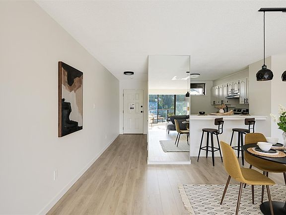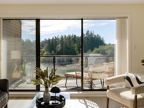 AMAZING WATERFRONT condo in desirable View Royal with stunning ocean views. This large southwest condo has over 1200 sqft of living space. Featuring a highly functional layout, this home offers two well-separated bedrooms, including a bright primary. The primary has a walk-through closet, full ensuite, skylight that provides natural light, and access to the balcony overlooking the water. Take in sweeping ocean views and daily wildlife sightings from your large balcony, or enjoy peaceful strolls along the shoreline. Inside, the condo shines with a complete top-to-bottom renovation: new flooring, fresh paint, modern countertops, SS appliances, new lighting, and both bathrooms. The open-concept living area flows seamlessly into a roomy, well-appointed kitchen, in-suite laundry & extra storage. Enjoy premium amenities, including an outdoor swimming pool, sauna, and TWO parking stalls. Pet-friendly. Steps away from Thetis Lake, Galloping Goose Trail, Juan De Fuca Rec Centre, and shopping.