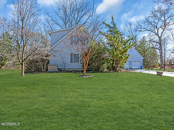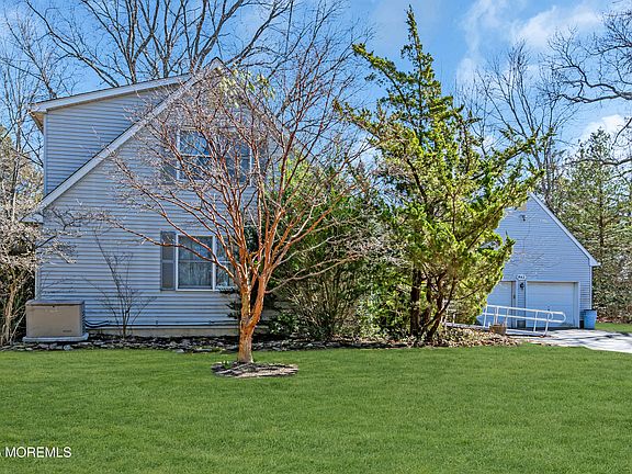 Welcome to this custom Cape home nestled on a beautiful wooded, level lot in Jackson, NJ. This charming 3-bedroom, 2-bathroom home offers the perfect blend of comfort and convenience, with a detached 2-car garage connected by a breezeway. The full basement with Bilco doors provides ample storage space and potential for additional living space. Step inside to discover a spacious eat-in kitchen with a pantry, ideal for meal prep and casual dining. The dining room and living room feature gleaming wood flooring throughout the home, creating a warm and inviting atmosphere. The primary bedroom is a true retreat, offering a large heated closet for ultimate convenience and storage. Each of the bedrooms features wall-to-wall closets, with the second bedroom offering a walk-in attic for additional storage options.