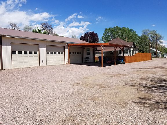 Adorable and comfortably updated 3 bedroom, 2 bath bungalow on an almost 1/2 acre fenced lot, and wow! The gigantic 1500 sq ft heated and insulated shop with 3 garage bays and metal roof will leave you dreaming of unlimited projects and pulldown stairs to garage attic for even more storage!! Tile flooring in bathrooms and kitchen and newer carpet and fixtures throughout. Large sunny bay window and lots of big windows throughout the home let in a lot of light and a lot of views! Roof on house replaced in 2016, new plumbing (pex), and most windows replaced with double pane vinyl, upgrades include central air conditioning and new concrete pad for the metal shed next to shop. Solar motion lights provide security and light the way at night. Rocked landscaping with perimeter fencing and privacy fence around grass yard area and covered patio. Also has 2-car carport in addition to plenty of parking for RVS, and includes the 40'x9.5' shipping container! Living room is wired for surround sound. Property also includes a bounty of apricot, apple, pear, and plum trees! This home has so much to love to check off your must have list, come see for yourself, and make yourself at home!