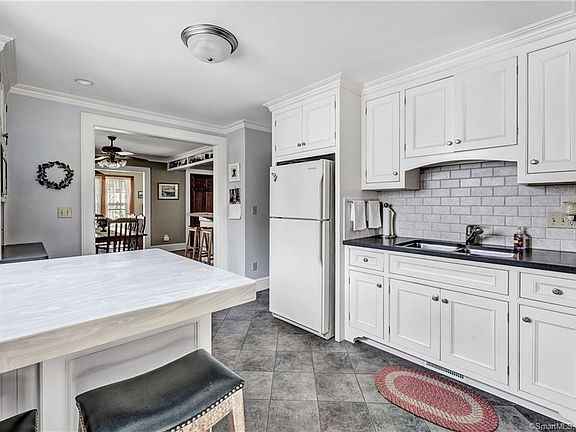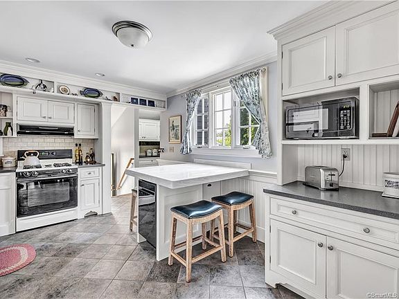 Beautiful 4 bedroom, 2 full bath Cape w/pretty covered front porch, is situated on level lot within desirable North End neighborhood. The moment you enter this meticulously cared for home, you're embraced by a feeling of warmth, comfort & attention to detail. Open concept living area showcases gorgeous woodwork throughout, featuring custom built-ins, crown molding, wainscoting etc..Kitchen is fabulous!! Loads of cabinet and counter space offering bright white cabinetry w/pull out drawers, tiled backsplash, corian countertops, double sinks, built-in breakfast island, butlers pantry & for those who love to cook, "Gas Cooking". Spacious dining room w/built-in breakfast bar, makes way for hosting large family dinners and holiday events. "Working from home still?" Bonus area adjacent to living room, makes a great space for home office. A main level bedroom along with full bath, is perfect for those individuals looking for ease of main level living. Second floor sleeping quarters w/skylights offers 3 bedrooms, along with a full bath which features a separate dressing area. Rear mudroom leads outside to impressive oversized covered patio, making a terrific addition for outdoor gatherings rain or shine. Close proximity to everything...including schools, parks, playgrounds, eateries, shopping, health clubs, seasonal farmers market, summer concerts, etc...Excellent commuter location with all major highways & Metro North train only minutes away. "Come make this house your home!"