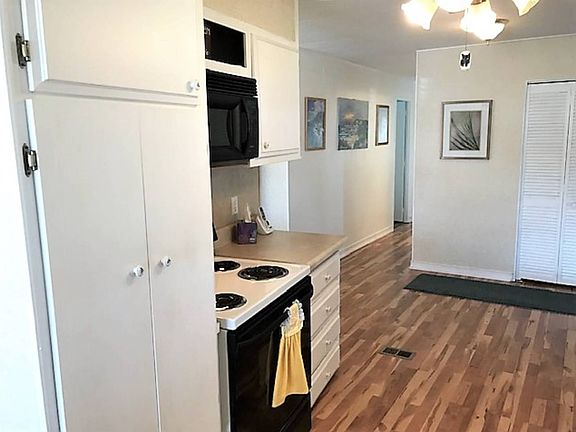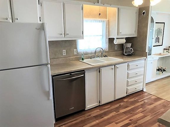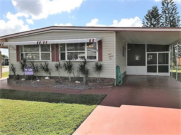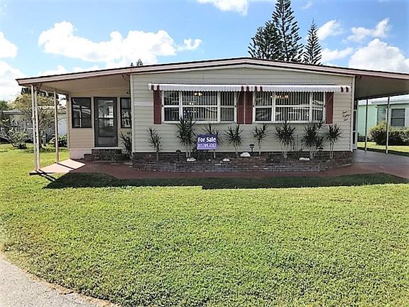 JUST LISTED TURNKEY - $25,500 This home features: 1. 1,152 square feet of wonderful living space plus an enclosed lanai and a screened lanai for an additional 368 square feet of bonus living space. 2. The street appeal is immediate with this home on a corner lot and plenty of yard space and a large driveway 3. The kitchen is bright white and is equipped with all appliances and kitchenware to start cooking right away. New backsplash, stainless dishwasher 4. The home is TURNKEY including a large screen newer tv in the living room 5. New Laminate floors in the kitchen, hall and master bedroom 6. New showers in both baths 7. New wallpaper or fresh paint in the entire home 8. Screened lanai for relaxing and entertaining. The screened lanai has a double door allowing you secure parking for your golf cart if you only winter here. 9. There is a very comfortable warm "home" feeling about this Home. Just walk in this very clean and well maintained home and you can relax the entire winter. 10. Close to Manatee Hall and Pool, the newly remodeled South Fitness center, the Community Garden, the Pavilion Picnic area and the private fishing pier. ACT FAST & CALL TODAY!! Don't forget to ask about the FINANCING available on this home. Colony Cove is an age qualified (55+) five-star resort community of manufactured / mobile homes. The "Cove" boasts 5 clubhouses, 5 heated pools, a riverfront pavilion and private fishing pier, a private marina, a fenced dog park (very pet friendly), tennis, shuffleboard, new pickleball courts, 2 new fitness rooms, 24 hour patrol, clubs for every interest, and much more. There are daily planned activities throughout the park. Bottom line, if you get bored here, it's your own fault!! The lot rent in Colony Cove is based on the homes' location. While the monthly rent may not be the lowest around, it's by far the best value for the money. Not only does the monthly rent cover all of the amenities of the community listed above, it also covers almost all other monthly expenses such as; water, sewer, trash pickup, all property taxes, lawn maintenance. . .pretty much every monthly expense except electricity, cable and internet. The current lot rent on this home is estimated at $794.13 per month.