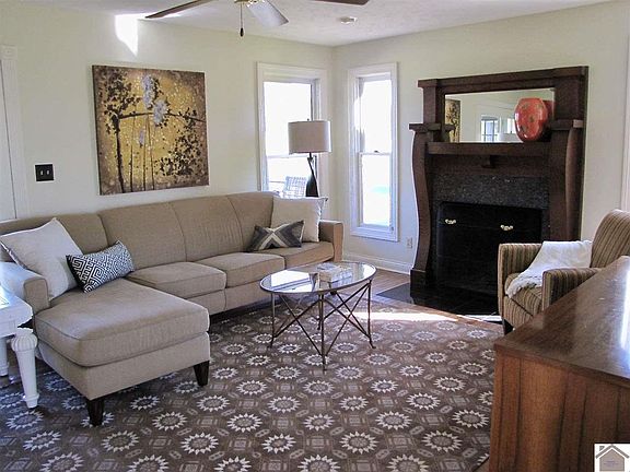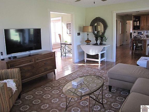 Great four bedroom, two and a half bath home in prime location! Located just outside the city limits in Calvert City on approx 3 +/- acres. . This home has hardwood floors, large kitchen with lots of cabinets and granite countertops. Main floor master bedroom and bath. Finished basement for extra space and just hanging out. Beautifully decorated, fresh paint and move-in ready! Covered front porch, cozy covered back porch. Most furnishings are negotiable.