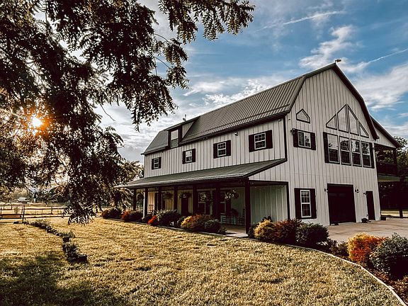 This beautiful property is a homesteader's DREAM!! This is a beautifully custom-built farmhouse with a year-round live creek, a 5-year old orchard, and 3 neatly fenced areas for small livestock and chickens. 40% open land and 60% forest! This is an A-List property! When you drive onto this lovely farm that's a quick 20 minutes outside of Springfield, MO, you're immediately met with a wide asphalt driveway (2021) and a steel gate. There's a pedestal for guests to call, or you can open remotely. Past the gate, you will wind through the trees until you come to a large clearing that captures the beauty and privacy in a snapshot. The year-round creek runs through the middle of the property, with cut trails through the woods. Once approaching the farmhouse, there is a large orchard with a variety of fruit trees. There are also grapevines and blackberries. The home is Amish built with TimberTek deck, porches, an amazing great room that's the heart of the home, granite countertops, stainless steel appliances, custom trim, cabinets and built in shelving throughout, Douglas Fir beams, 2 large kitchen sinks, 2 laundry rooms, 4 beautiful and large bedrooms + a bonus room. The fireplace has mason-built stonework that matches the stone over the range. 4 lovely full baths. Enjoy a chef's kitchen with a 6-top range (all electric) with so much workspace, endless cabinets with soft close doors, pull out shelves, commercial sized refrigerator, double oven, the most amazing pantry you've ever seen, and so much more. There is a ground source heating/cooling system with 4 zones in the home, 2 water heaters, a whole-house water filtration system. The window treatments were custom made for the home with black-out materials used. This is a WOW house with too many details to list! A survey is in process that will increase the property acreage of this parcel from 14.37 acres to 17.37 acres. Other neighboring parcels with improvements are for sale on separate listings (21.65 acres with a barn