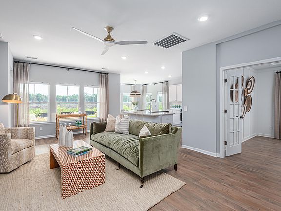 This adorable Litchfield cottage is located in Waterside at Cane Bay Plantation. This single story home features an open concept layout. The front exterior is graced with a beautiful front porch and the attached 2-car garage sits back providing a long driveway. Enter the home to a large foyer featuring 2 bedrooms and full bath off to one side with garage entry and laundry room to the other. The beautiful eat in kitchen features quartz countertops, subway tile backsplash, stainless steel appliances. There's also and office with French doors next to the kitchen. The great room features tons of natural light. The master suite is located off the back of the home and offers privacy from the guest bedrooms and features dual vanities and oversized, ceramic tiled shower.Enjoy the wooded views from the back covered porch offering ultimate privacy. Welcome home to Waterside. Nestled in Cane Bay Plantation and close to everything you will love living here. The community features a resort style amenity center complete with pool, playground and picnic pavilion. The community sits on the Lake of Cane Bay. This 300 acre lake system is perfect for kayaking, canoeing, paddle boarding and electric motor boating. Come join the lake life here in Cane Bay! This home is in the very early stages of construction and is scheduled for a October 2022 completion.