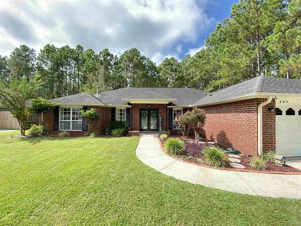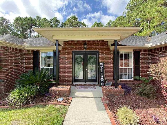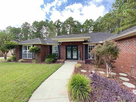 Welcome Home! Immaculate brick 4/3 on a quiet street in the Riola Place subdivision, a well kept secret nestled in Southwest Pensacola. The home features recently updated kitchen & baths, new HVAC, and much more. Open/split floor plan with wood-look luxury vinyl plank in the living areas and tiled bathrooms. Large great room with cathedral ceiling, plant ledges, gas fireplace and sliding glass door leading out to the backyard. Beautiful kitchen overlooking the living area with new countertops, backsplash, stainless appliances, and a breakfast bar. There's also breakfast room and formal dining room. Large master suite and spacious bath with double vanity, gardens tub, separate shower, and huge walk-in closet partitioned for his/her. The backyard is privacy fenced on both sides & fronts, and it backs up to 10-acres of private wooded conservation area to enjoy the added seclusion and wildlife. There's also a covered porch, an open patio, pergola, and massive storage shed with a spacious deck. Great schools and only minutes from NAS-P, Lillian, and the beautiful beaches at Perdido Key!