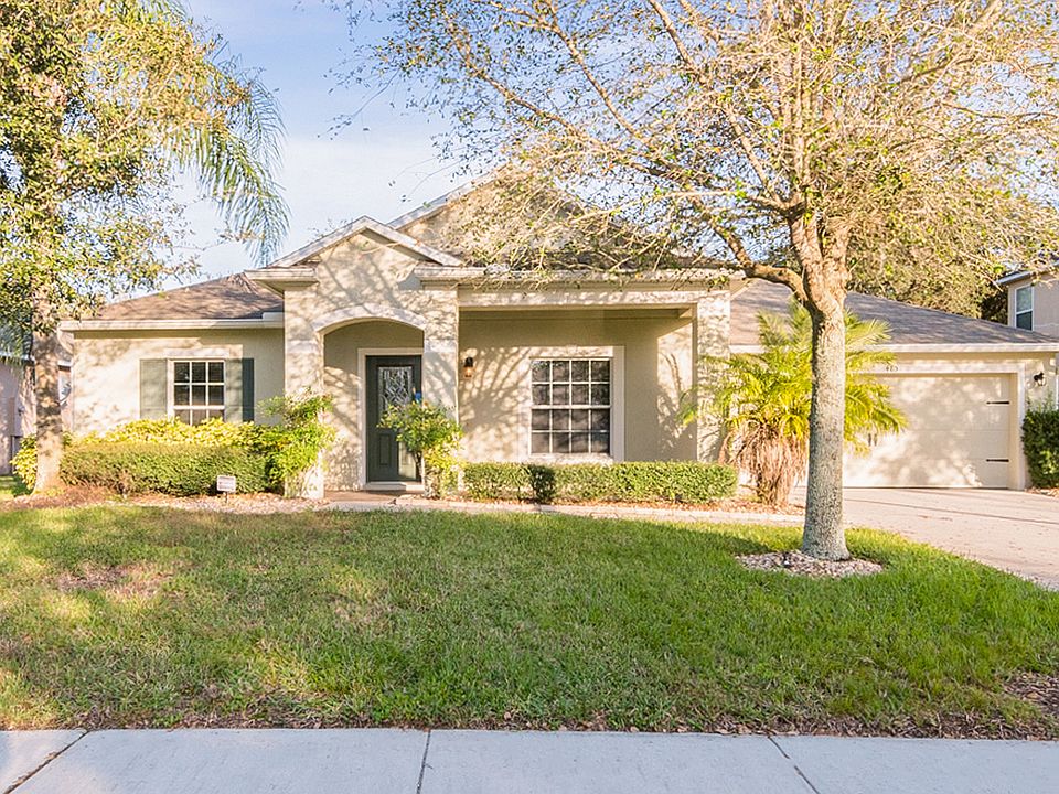 This Apopka one-story home offers a kitchen island, granite kitchen countertops, a den, a master bath separate tub and shower with dual sinks, a master bedroom walk-in closet, a screened porch, and a two-car garage. You can instantly unlock and tour this home any day of the week from 6 am to 9 pm (New Year's Eve: 6am-3pm), no appointment needed. Plus, every Opendoor home comes with a 90-day buyback guarantee. Terms and conditions apply.