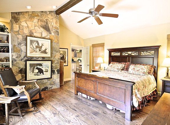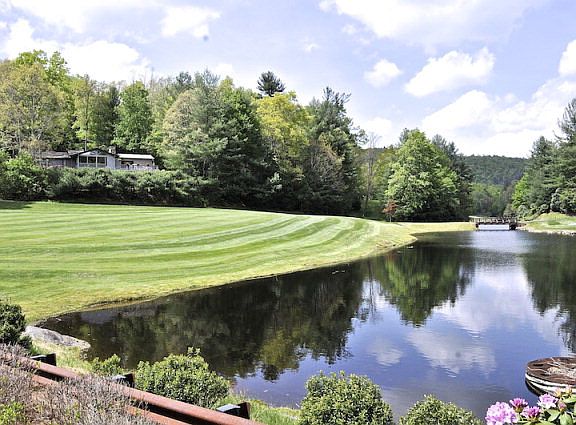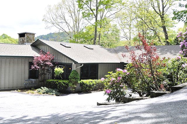 Beautiful, light-filled, renovated home overlooking first fairway and pond in Highlands Falls Country Club. Split floor plan with two bedrooms large enough to be master suites, perfect for in-law or nanny areas. Open living area with vaulted ceilings, beautifully renovated kitchen, dining area and stacked stone fireplace-leads to expansive sun porch, the perfect place to relax and enjoy a morning cup of coffee while snuggling in next to the cozy fireplace. Office could also be sleeping area. Basement area with golf cart garage and workshop. Beautifully landscaped yard and covered parking in one car carport with additional parking pad. Carefree club living in close to town location!