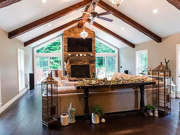 Custom log home - this immaculate home was designed to become your dream home. Fully applianced open concept kitchen/LR/Dining. Great room is perfect for entertaining w/a magnificent gas FRPL, cathedral wood beam ceiling. Home has been completely updated w/the finest materials, you'll see the quality of this home is a rare find. Professionally finished lower lever has another large family room. office, & full bath. The recent addition has transformed this home into the gorgeous home it is today!