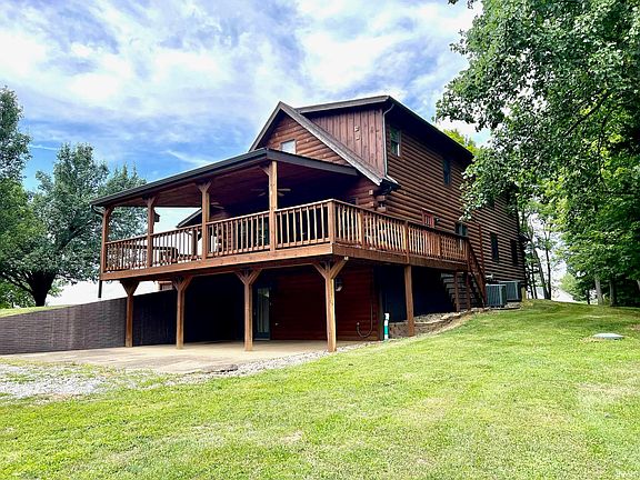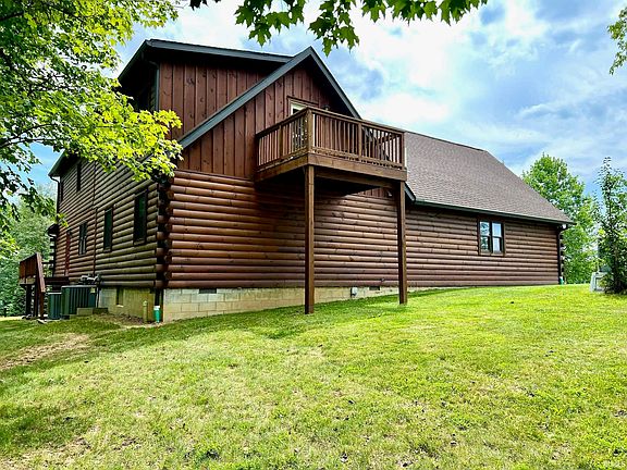 Stunning Log Home on 4.5 serene acres nestled down a long private drive with remarkable views and a wrap around porch! Extensively renovated in 2020, this home offers a blend of rustic charm and modern comfort, highlighted by numerous upgrades including a new kitchen with bright white cabinets & tasteful tile centered around the open floor plan to living/dining area. The two car garage was also added in 2020, in conjunction with the 20X24 primary bedroom added over top the garage to complete the upstairs primary suite which features a new balcony, new closest, sitting room/office area and a new tiled shower. Additional features include a detached 30X32 garage, a new high efficiency heat pump (2023) with gas back up, 3 new smart thermostats, new hot water heater (2023), new laundry room, both stair cases were completely moved and new (2020), and an additional bathroom was added. Additional partially finished family room in basement. Outdoor playground area with mature apple trees. Recently surveyed from larger parcel, new taxes to be assessed.