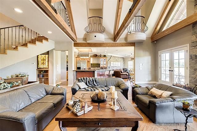 RARE FRENCH COUNTRY HOME on 9.86acres~LOVEJOY ISD~Beautifully & uniquely designed w~natural materials such as cashmere slate, Alabama river rock & Georgia pine wood floors. Offering a spacious, open floorplan w~several gathering spaces that invite guests from room to room. Primitive touches such as exposed brick, wooden trusses & antique glass are found throughout. Private Master suite offers tranquil views, gas fireplace & a stunning master bath w~custom closet. Upstairs are 3 split bedrooms, workout rm w~attached deck, plenty of storage, & reading nooks. A private apt w~kitchen~living~bath~bedroom & attached deck is just up the back staircase from the garage. Smart-wired to control HVAC~music~lighting & MORE!