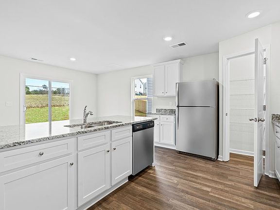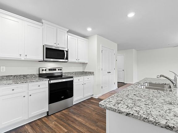 This stunning home has the open floor plan you desire! The spacious kitchen offers plenty of room to move around and high-end finishes such as a complete suite of energy-efficient Whirlpool® appliances, beautiful granite countertops, real wood cabinetry with crown molding, and more. Upstairs, an incredible loft space offers an ideal flex space for you to use as an office or game room! The master suite boasts a vaulted ceiling, large private bath and expansive walk-in closet.