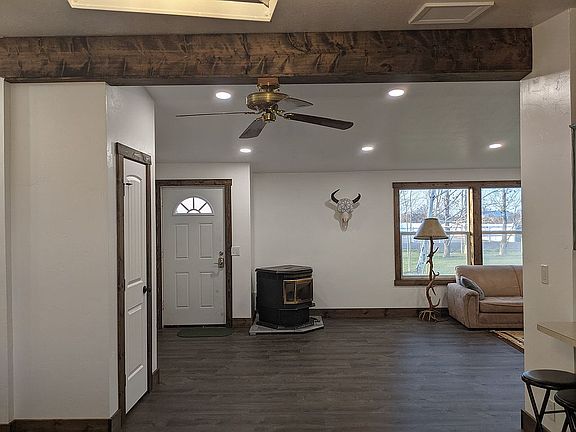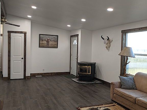 Beautiful remodeled home with 6 acres in the country. It is on a concrete foundation. Comes with new paint, LVP flooring, carpet, doors, base/trim, updated electrical and a new dishwasher. 3 bed, 2 bath, 1600 SQ ft. Enjoy a large 30x30 shop with a wood fireplace and lots of room for storage. Fenced in backyard with automatic sprinklers and lots of trees for shade. The pasture is flood irrigated with 3 automatic waterers for the animals. Also comes with a garden, 2 pens, and a small tack shed.