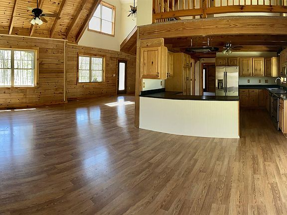 Looking for a beautiful home up on a hill with lake views?? Well, here it is!! Such a serene setting! Beautiful log home nestled up on a hill in a wooded lot. Multiple views of the lake from the porch! Great size pole barn for holding all your outdoor toys. The interior has amazing wood accents. Open floor plan with vaulted ceilings.