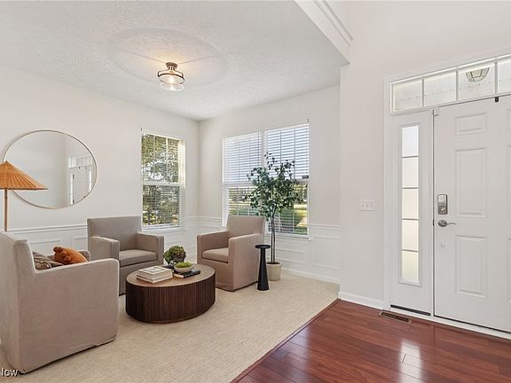 This exquisite 4-bedroom plus home office, 3.5-bath colonial was originally crafted as the community’s model home and has been beautifully maintained and upgraded to offer a true turn-key lifestyle. With nearly 4,000 finished square feet, every space has been thoughtfully designed for comfort, functionality, and style. A formal sitting room greets you at the entry, offering an elegant space for receiving guests, reading, or quiet conversation, before the home opens into the expansive great room. Anchored by a gas fireplace and filled with natural light, the great room seamlessly connects to the gourmet kitchen with granite countertops, gas double oven, island seating, and a sun-splashed morning room with panoramic views of the private, fenced yard. Step outside to a 350+ sq. ft. Trex deck—perfect for entertaining or simply relaxing outdoors. The vaulted home office is a true highlight, with soaring ceilings, rich wainscoting, and walls of windows that create an inspiring work-from-home retreat. Upstairs, the luxurious owner’s suite features a ensuite bath and walk-in closet, complemented by three additional bedrooms, each with its own walk-in. The finished lower level adds exceptional versatility, complete with a full bath, media/theater room, recreation area and designated home gym. Thoughtful updates throughout ensure this home is completely move-in ready. Waterside Crossings North offers resort-style amenities including a pool, tennis courts, playgrounds, walking trails, and a community garden, while Avon Lake’s top-rated schools, shopping, dining, and Lake Erie are just minutes away. A rare opportunity to own a showcase home where every feature was designed to impress—and still does today.