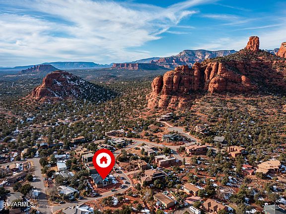 Gorgeous new build in middle of West Sedona on the desired North side of State Route 89A. Fabulous red rock views to the East and North. All surrounding homes already constructed, preserving existing views. Top quality/ultra modern finishes. Solid wood cabinets, fire glass fireplace tiled to the ceiling in white, split floor plan, living room view deck & front paver patio. Long lasting metal roof (gorgeous blue) & stucco/stone exterior. No wonder it sold before it was ever on the market! Lovely neighborhood that, once there, few ever leave. Builder has other lots for your new home.