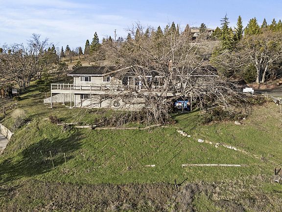 Realize your dreams with this 2.43-acre opportunity on Aerial Heights! This mid-century, ranch style 4 bdrms/3 baths home offers spectacular views of the Rogue Valley and the Siskiyou mountains, vaulted wood ceilings with exposed beams, enviable south exposure, two wood burning fireplaces, and a large wraparound deck that capitalizes on the exceptional views. The 2300 sq.ft., two level home features living, dining, kitchen, bath, and master ensuite with a walk-in closet upstairs. The downstairs offers 3 more bedrooms, a bath, a family room, and a workshop or space for sauna or extra storage... you choose! Revitalize the once productive vineyard, garden, and in-ground pool and experience country living at its best with a peaceful, private view retreat you will look forward to coming home to. Update this home to suit, build your dream home, or both, by exploring future subdivision potential. Several nearby homes have been listed or sold for on million+. Don't miss this rare opportunity.