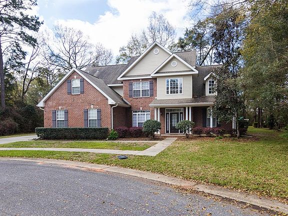 Spread out in your new 4BD/3BA home located on a quiet cul-de-sac in a gated community. Just under 2,500 sq ft with no carpet, only real hardwood flooring and tile throughout. A 21' ceiling greets your entry and leads you to the dining and living room with a gas fireplace. The kitchen features include wood cabinetry and granite counter tops, and a stainless, french door refrigerator. The back, enclosed patio off the living area overlooks the large backyard. A first floor master bedroom leads into a large ensuite bath with both a Rain shower and garden tub (Don't miss the large closet). Two more bedrooms are located upstairs as well as an additional one on the first floor, but there's also a sitting room that leads into a large attic space with lots of potential.