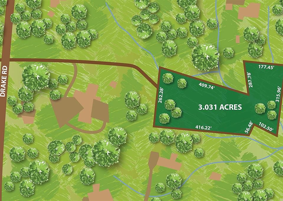 3.03 Acres. Beautiful Private Lot on South Drake. Very Desirable location for custom luxury home. Mostly flat...nice size building pad....slight slope at edges. 70% of lot is cleared. Abuts Park like Oasis. Tranquil setting. Choose your Builder & Architect for your dream home.