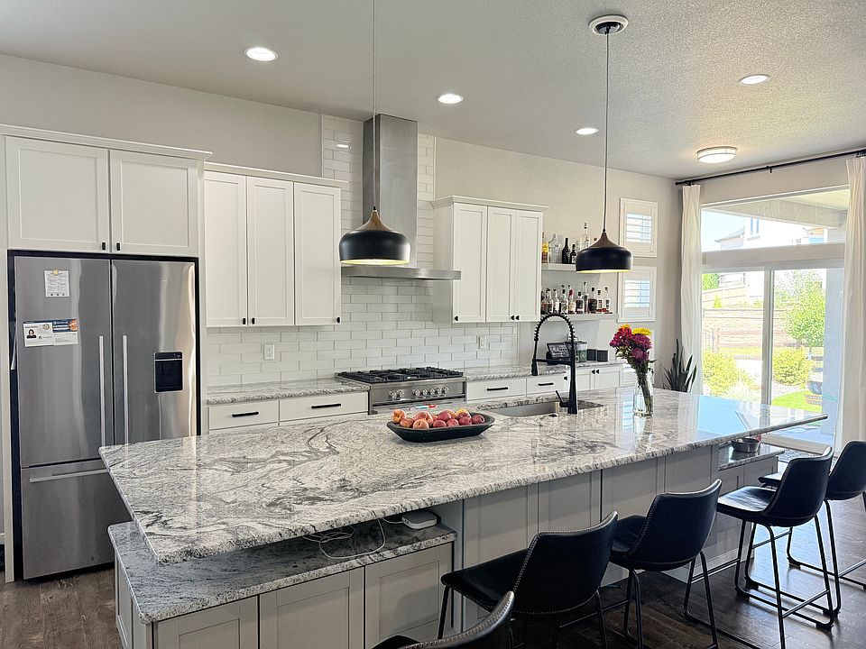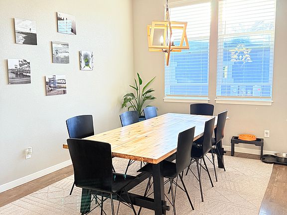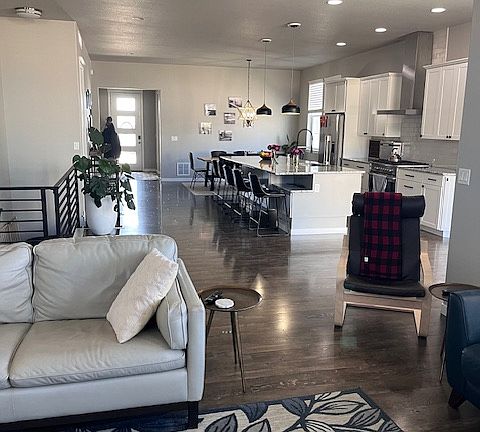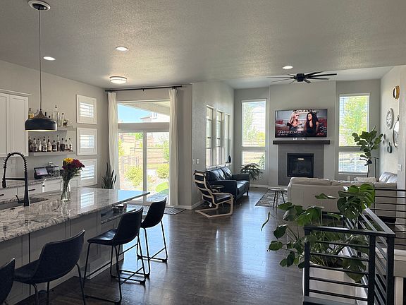First three months $100 off. 12 Month Lease, $3,295 deposit, Available Oct 1 Open floor plan with 12 and 14 foot ceilings and 8 foot doors. D20 School district Whole house is saturated with natural light Large turfed back yard Great view onto green space Solar therefore extremely low electrical bill Large insulated Garage (14 foot ceilings) Quit family friendly cul-de-sac
