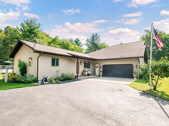 Elegant home for those who have an eye for the finer things in life... High end chef's kitchen with stunning Quartz countertops, Wolf Cooktop, oversized island for gathering, formal dining, and a separate coffee/wine bar. 3 bedroom 3 bath home featuring Bamboo floors & a split floor plan. Master suite, walk-in closet, ensuite, plenty of space for a king size bedroom set and yet additional sitting area. Head outside to a beautifully landscaped yard offering a private entertainment space featuring several patio areas, heated-above ground pool- designed with its very own lounging area, multiple garden areas, side patio with private access to the master suite, detached 30x40 pole building, & additional 16x20 storage building. All of this sits on 10 beautiful wooded acres!