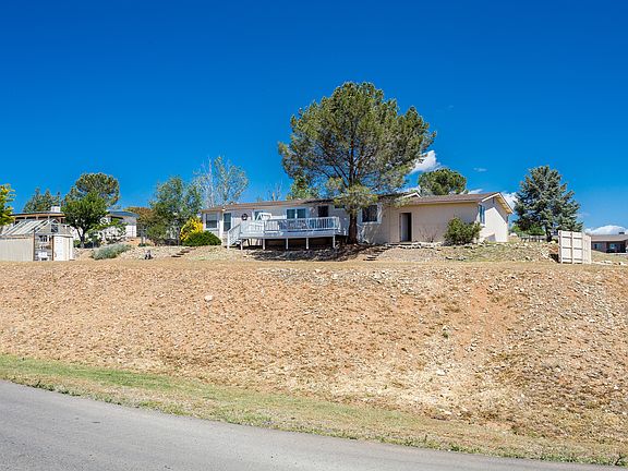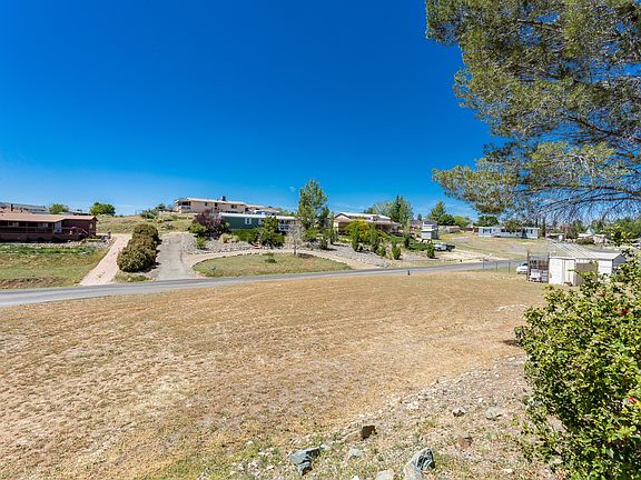 This attractive home sits high above street level and offers great views of the surrounding neighborhood. Big eat-in remodeled Kitchen w/ double French Doors to the Rear Patio plus a Formal Dining Room. Vaulted ceilings. Spacious Living Room and large Master Bedroom plus 2 more Guest Bedrooms (could be Office or Hobby Room). Quality Wood Laminate Flooring throughout. Large Front Deck with big shade tree overlooks a huge, low maintenance yard (corner lot). Plenty of room for cars and storage in the attached 2 car garage. Parking pad for RV/trailer/3rd vehicle and a double gate for additional access. Unique large Planter/Greenhouse in corner of front yard for your vegetable garden or flowers. Location is convenient to Fain Road and Hwy 69 to Prescott, Prescott Valley, Dewey or I-17 to Phx