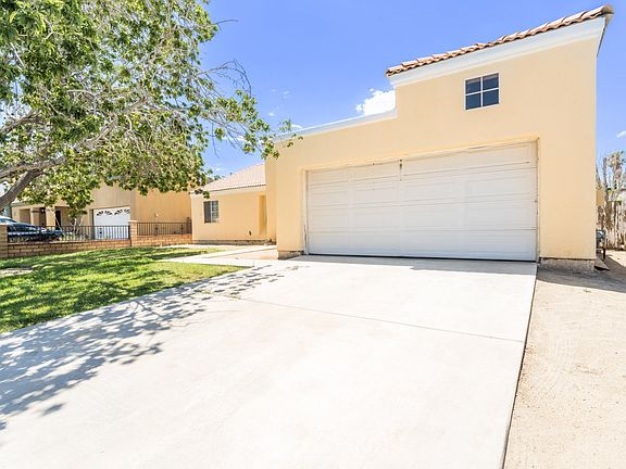 Cheerful East Side 3-bedroom home residing in Palmdale! A lusciously green lawn with a shady tree details this 1,285-sqft home featuring an attached 2-car garage & a welcoming double door entry. Discover inside an inviting space filled with natural light, glossy stone tile floors & high ceilings which accentuate the adjoined living & dining rooms while a corner fireplace creates a cozy ambiance. Glittering granite counters, chocolate wood sharker cabinets, a wide stainless-steel farmhouse sink, & built-in stainless-steel appliances adorn the kitchen. Plus, there's convenience direct access to the garage. Down the hall are three spacious bedrooms complete with built-in closet storage while the largest bedroom includes a private attached split bathroom. Outside, the open sun-washed patio area & blank canvas yard provides the ideal seating to craft an ideal desert oasis, perfect for first-time home buyers. Nearby 47th St Pavillion, Domenic Massari Park, shops, restaurants & more!