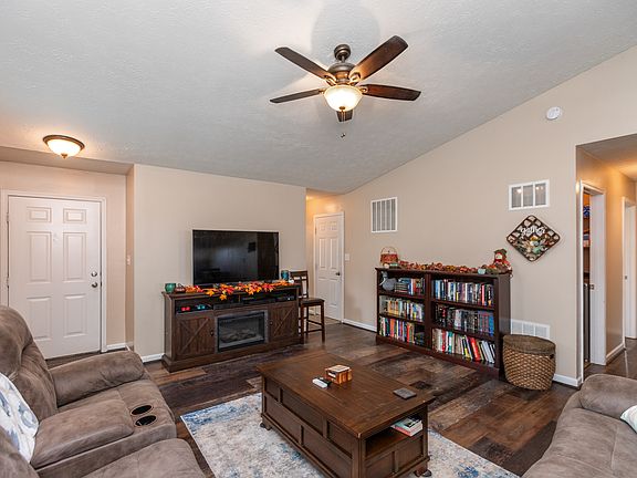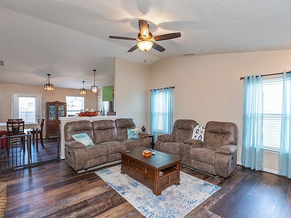 Welcome to 4850 Pinion Circle in the lovely neighborhood of Carter Crossing. As you walk into this 3 bed, 2 bath home you are greeted by newer, attractive vinyl plank flooring throughout common living areas. The sizable living room opens to the kitchen, adding to the functionality of the floor 1252 sq ft floorplan. The fully appliance, eat-in kitchen features ss appliances, a pantry, under cabinet lighting and newer vinyl plank flooring. The entertainment factor is increased in this home with the easy access to the large patio just off the kitchen. With its fire pit and grilling area, it is a space where friends will naturally gather. The backyard is fully fenced and has a mini barn which adds to the storage capacity of this home. Back inside you will find a spacious primary bedroom with an en suite tub/shower combo, walk in closet and a large ceiling fan. The secondary bedrooms are split with one near the primary and the other near the second bath on the other side of the home providing a nice place for a quite office or privacy. The home is rounded out with a two car, attached garage providing additional storage space and a great space to work on your next project.
