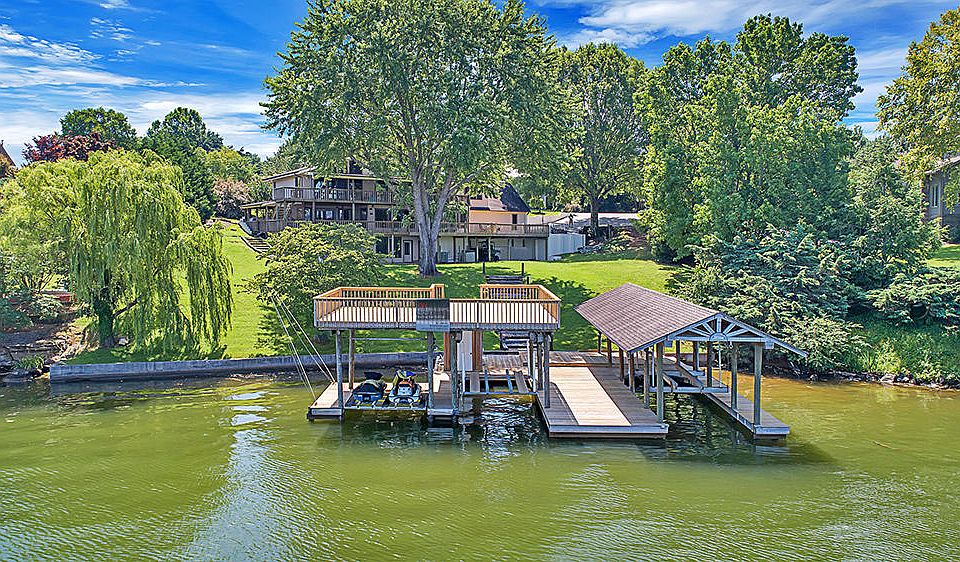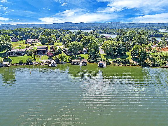 Fort Loudon Lake Living At It's Finest! Situated in the gated Louisville community of Scenic Point, this 4BR/4BA home is positioned perfectly to maximize the summer sun w/stunning western facing sunset views. W/over 2,000 sqft of covered deck on two levels & an oversized dock to include 2 boat slips w/lifts, space for 2 jet skis, & 2 sundeck areas, the outdoor areas for entertaining/accommodating guests are plentiful. The floorplan is great when it comes to being the lake house to host friends & family. Fantastic open kitchen, vaulted ceilings, guest BR on the main level, 3BR's upstairs, & an office & den in the walkout downstairs w/an oversized workshop space; running out of space for your guests to stay. Absolutely one of the best locations to be on the water w/proximity to everything!