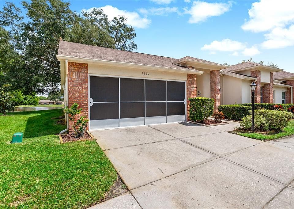 Cozy and Very Well Kept 2 BR /2 Bath / 2 Car Garage End Unit Condo/Villa is waiting for YOU! Located in the Charming Heritage Lake 55 + Community with a beautiful pond view. Walk into your Large Living Room / Dining Room Combo and Entertain in your Bonus Room with Panoramic Views overlooking the water or on your outside patio. Kitchens Opens up to your Dining / Living Room and bonus Rooms. Plenty of Closet Space TOO! Master has 2 large walk in closets as well as Bedroom 1. Both Bathrooms have a skylight disc which gives ample amount of light throughout the day. New Roof Installed September 2021 and New Leaf Gutter Guards. Community Clubhouse with Pool/SPA and Plenty of Amenities and Events to Enjoy all year long. Conveniently located close to variety of Restaurants, Shopping, Beaches, Medical Facilities, World Famous Sponge Docks and Tampa International Airport. DONT WAIT Set your appointment today and view this Home!
