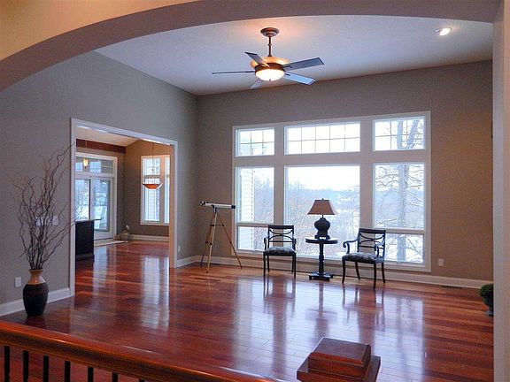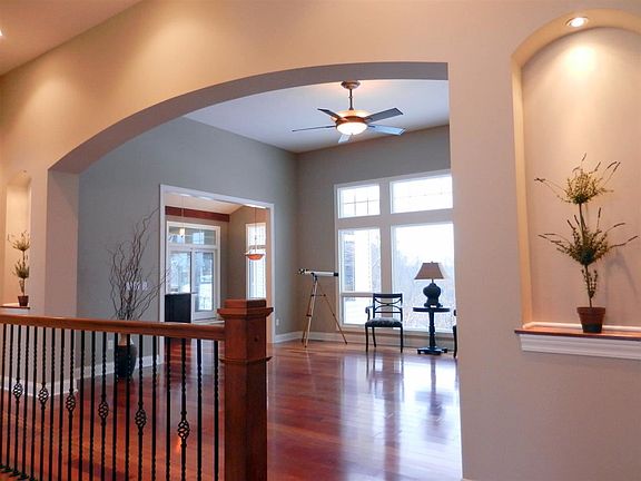 The Perfect Ranch you've been looking for! Soaring ceilings everywhere from 11'-14'. Open floor plan with custom features throughout. 8' doors, Archways, Coffered ceilings w/lighted tray, Niche's & Build-ins. Rich Cherry floors in the Entry, Formal dining, Great room & Kitchen. Chef's kitchen offers 14' beamed Clgs, High-end SS appl. Double oven, Exquisite granite Counters, Expansive Island, Pantry & Glass tile backsplash. All baths have granite counters & stylish sinks. Relaxing 3 Season Rm w/tree top views over the valley. Amazing Mst. Suite! Fantastic lower level w/o,wet bar, porch w/H-Tub
