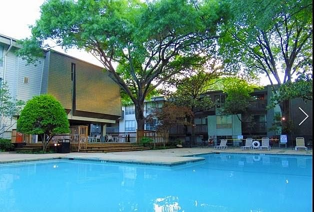 Third floor 2 BR, 2 Bath unit with one of the larges balconies overlooking creek! View of Downtown in wooded setting. Recently updated appliances, wood floors, Italian tile in the entrance way, kitchen, guest bath and dining area. Complex features elevator, garage parking and largest pool in the neighborhood! Community Washer & Dryer in building, on same floor.